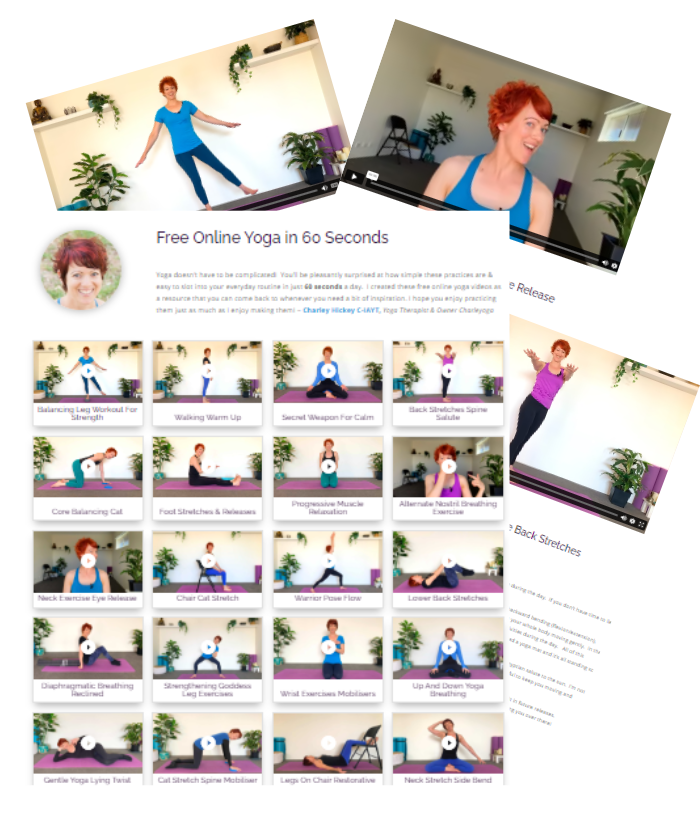 Get instant access to Charley’s FREE 60 Second Online Yoga Series